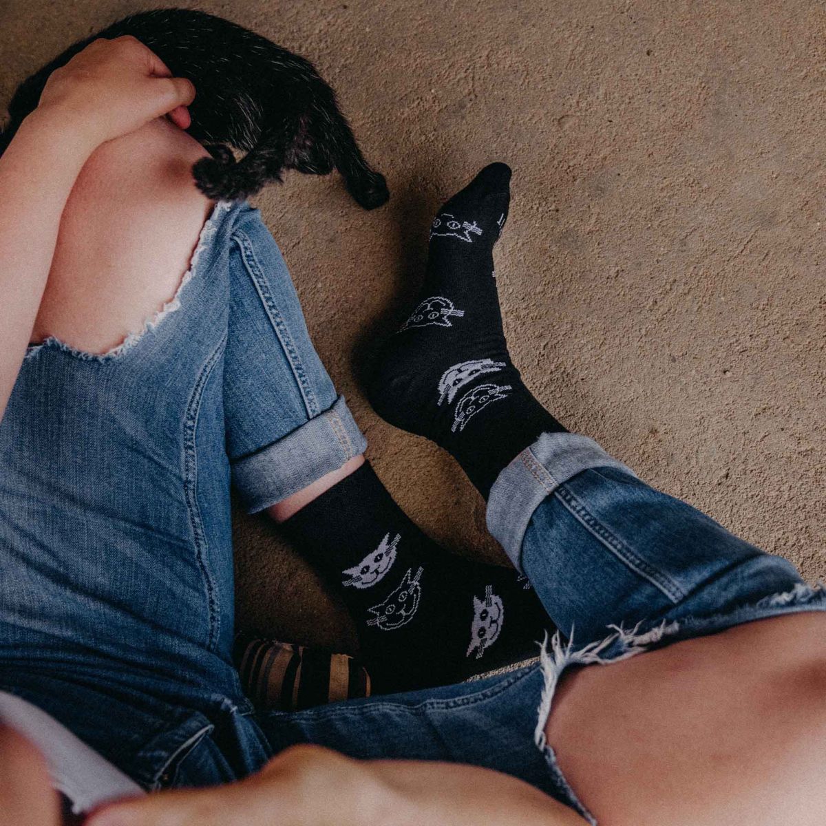 Ponožky Mačka vás zavedú do sveta, kde mačacia zvedavosť a hravosť nemajú hranice. Keď si ich navlečiete, okamžite pocítite tú ľahkosť a radosť, ktorú len mačky dokážu priniesť do našich životov. Tieto ponožky sú pre všetkých, ktorí sa radi smejú, milujú prekvapenia a veria v mágiu každodenných okamihov.