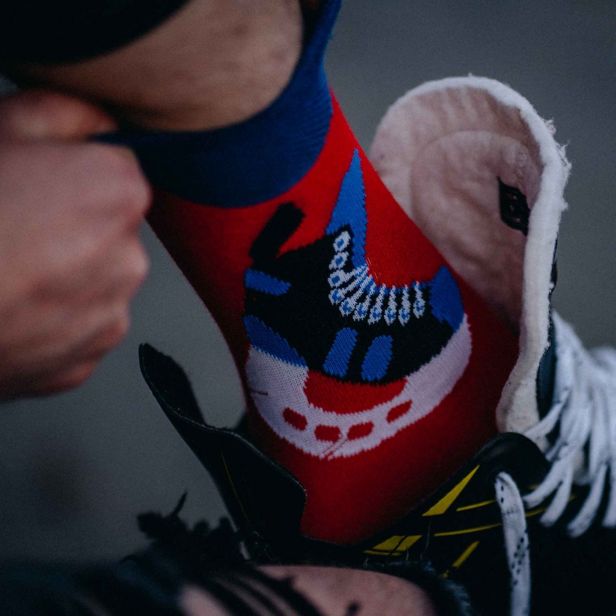 V krajine, kde ľad a sneh nie sú len súčasťou zimy, ale aj srdcom národného športu, sa zrodil pár ponožiek, ktoré nielen zahrejú nohy, ale aj srdce každého hokejového fanúšika. Na prvý pohľad vyzerajú ako bežný pár ponožiek, ale keď sa na ne pozriete bližšie, uvidíte, že sú niečo viac. Každá ponožka je ako malý hokejový štadión, kde sa odohráva zápas plný vášne a energie. Pri nosení týchto ponožiek cítite, ako vás ovláda hokejová horúčka. Každý krok, ktorý urobíte, je ako korčuľovanie po ľade, srdce vám bije v rytme zápasu na ľade, a dokonca aj pot, ktorý sa tvorí, má chuť víťazstva. Tieto ponožky nie sú len oblečením, sú zážitkom. Prinášajú vám kus hokejovej mágie, ktorá vás prenesie priamo do centra akcie, kde môžete cítiť adrenalín, vášeň a lásku k tomuto športu. S ponožkami "Hokej" od WitSocks, nie ste len divákom, ste súčasťou hry.