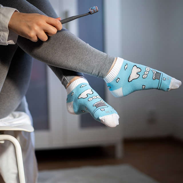 Nasaďte si tieto ponožky a vykročte do dňa s úsmevom, ktorý ide priamo od srdca. Pretože viete, že zubná starostlivosť je dôležitá – a štýl tiež!